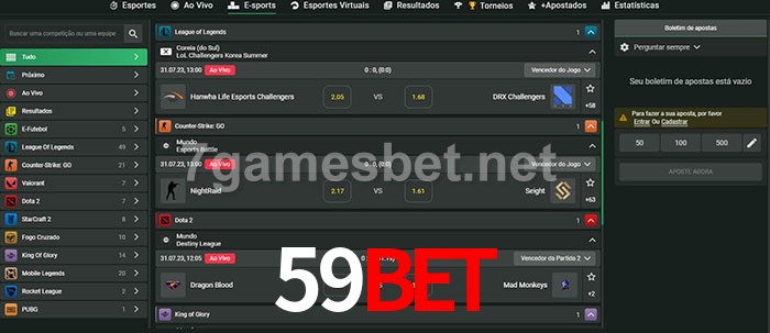 A aposta 59Bet oferece aos jogadores a experiência mais conveniente de apostas em eSports!